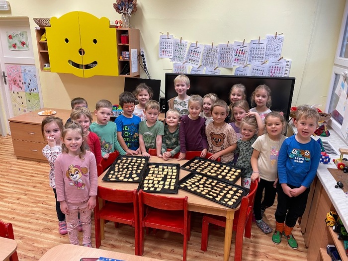 S dětmi ze tříd „berušky a kuřátka“ jsme společnými silami a s velkou chutí upekli vánoční cukroví. Děti se podílely na celém procesu pečení od výroby těsta, vykrajování, ukládání na plech až po slepování a ochutnávání . Při pečení děti zapojily všechny své smysly. Příjemná vůně lineckého cukroví provoněla celou školku.