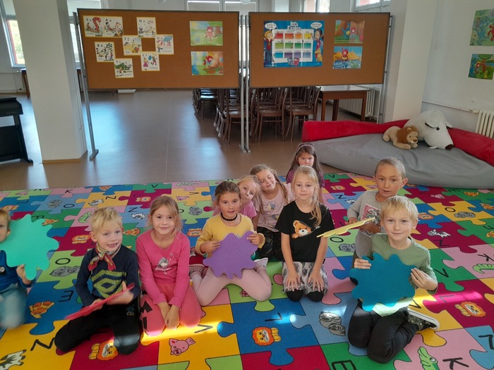 Předškolní děti mají „Hravou angličtinu“ vždy 2x týdně 45minut v sále MŠ. Po vydatném obědě si chviličku na polštářku a koberci odpočineme a jdeme na to…