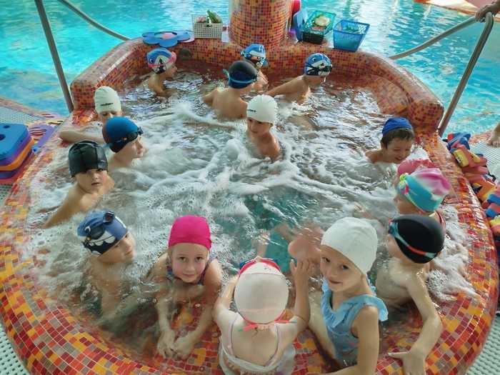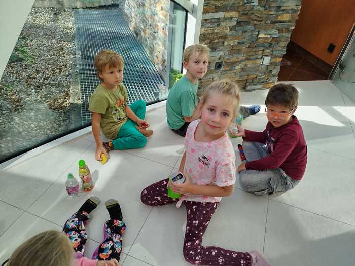 Ve středu ráno nám začalo oblíbené plavání v Crabíku. S přihlášenými dětmi jsme se vydali autobusem k bazénu Crab v Ostravě - Porubě. Děti si s batůžkem na zádech a úsměvem na tváři užívaly cestu a byly zvědavé, co je čeká. Po příjezdu se převlékly do plavek a pak to začalo: krátká rozcvička na suchu, hry ve vodě (např. Na kolotoč na vodní žíněnce) a rozdělení do dvou plaveckých skupin. Na závěr si děti užily teplou vířivku a parní saunu. Nechyběla ani svačinka - takže spokojenost veliká!