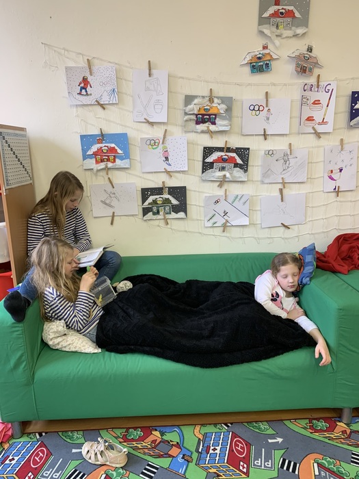 Březen je tradičně spojován s knihami. Čtení pro nás není žádnou novinkou – společné chvíle s příběhem si užíváme každý den hned po obědě. Někdy nám předčítá paní vychovatelka, jindy se role vypravěčů ujímají samy děti. Naším cílem je nejen zlepšovat techniku čtení, ale především si k literatuře vytvořit přirozený vztah a udělat z ní běžnou součást našich dnů.